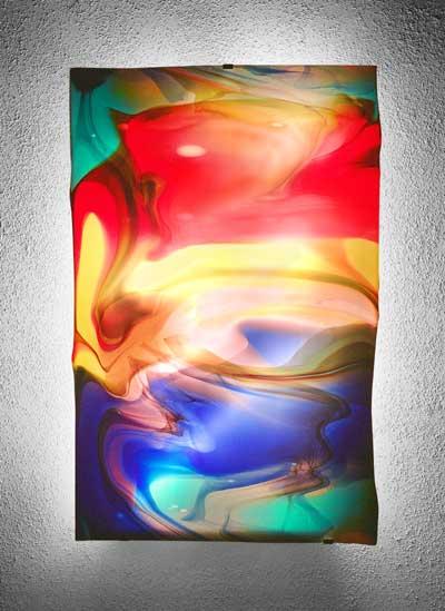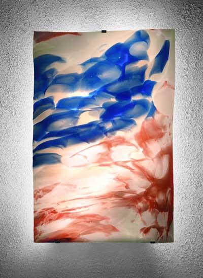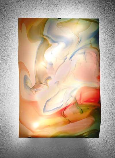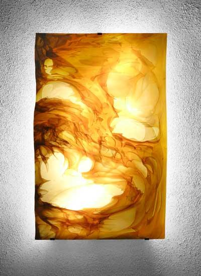 Nach alter Handwerkskunst hergestellte limitierte Glastafeln incl.Beleuchtungskörper mit Wandhalterung.