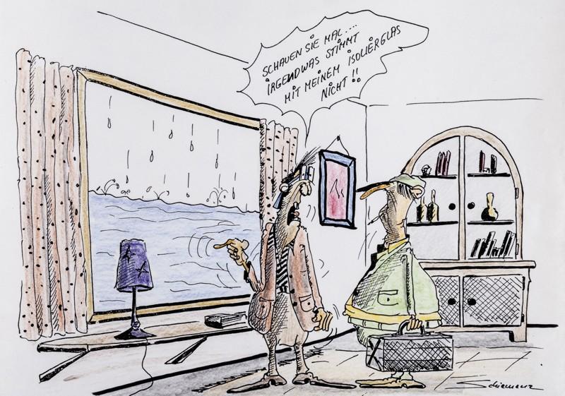 Durch Kondensation im Scheibenzwischenraum entstandene Feuchtigkeit macht das Mehrscheiben-Isolierglas trüb, ja sogar blind. Anbieter in Tageszeitungen versprechen Ihnen mit Spülsystemen diese Eintrübung zu beseitigen. Die Isoliergläser werden an zwei definierten Stellen angebohrt, um Zugang zum Scheibenzwischenraum zu erlangen. Durch dieses Anbohren der Scheiben ist das System Isolierglas nicht mehr vorhanden. Ist das eine Dauerlösung?