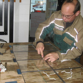 Arbeiten an und Erneuerung von historischen Gläsern.